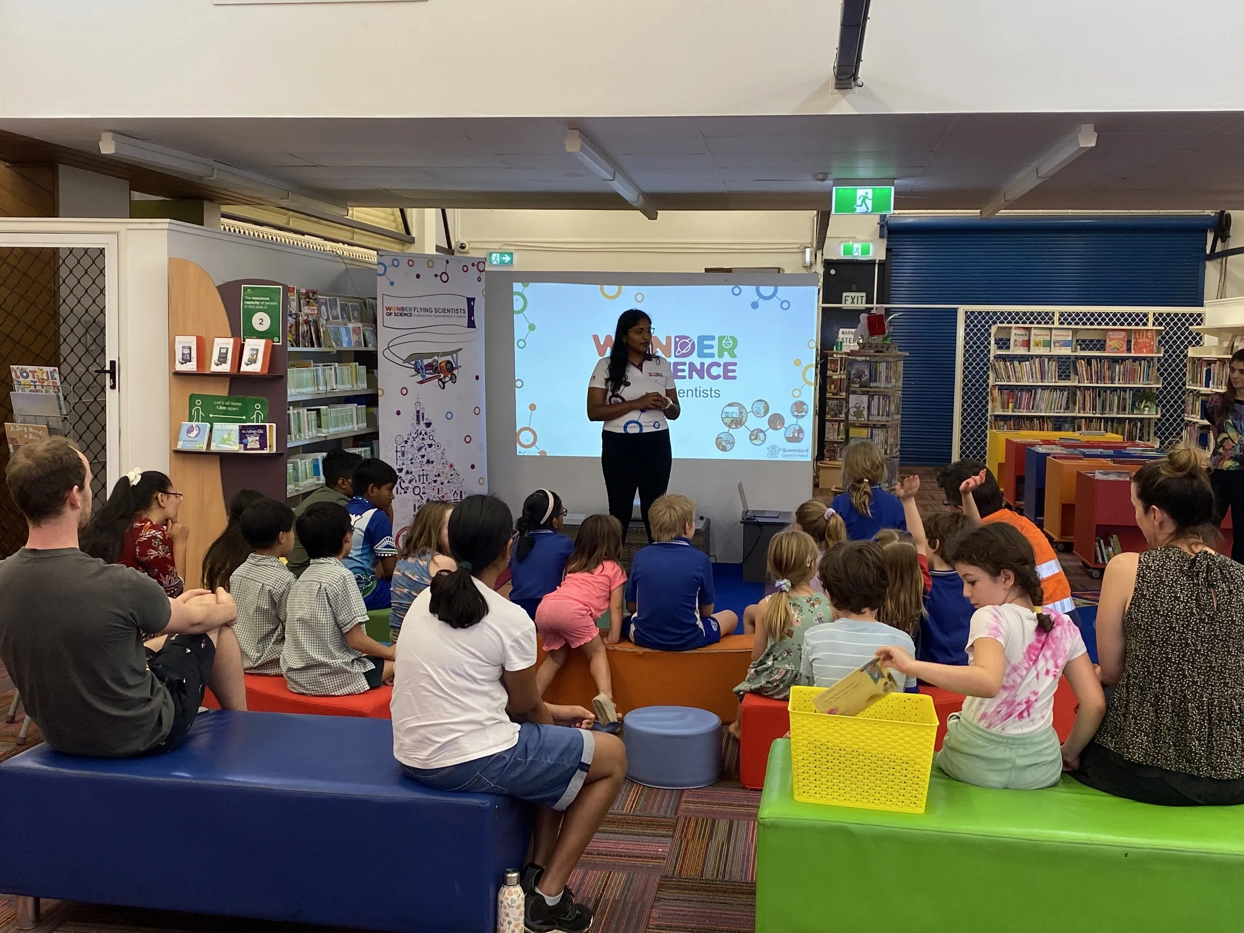 Dr Mariel Familiar Lopez (Griffith University) wowed school students in Mount Isa and Cloncurry, and community members at the Mount Isa Regional Library. Over two days, more than 200 participants learned about Dr Mariel’s research involving frogs and sharks and how to use Citizen Science apps (such as Frog Id) to become involved in science at a local level. Many were very intrigued to know about: how frogs have been used to confirm pregnancy in women; the current frog pandemic and the variety of ways sharks reproduce (eggs, live birth etc). Dr Mariel expected the sharks to ‘steal the show’, however was pleasantly surprised to note more engagement with all things Froggie — how to protect native species, to identify them via their call, and how to build ‘frog hotels’ at their schools. The Mount Isa Library event ‘Frogs, Photons and Circadian Clocks’ was supported by Wonder of Science Ambassador Sachini Fonseka (circadian clocks) and Dr Anita Milroy (photons). Our Queensland Chief Scientist, Professor Hugh Possingham was with us in a virtual mode over the two days and gave a pre-recorded 3-minute presentation on his role and how everyone can become involved in science through a variety of citizen science projects (online and apps).